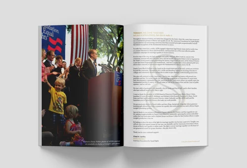 Event collateral for 8 the Play organized by the American Foundation for Equal Rights.